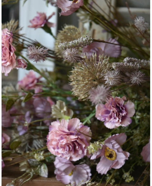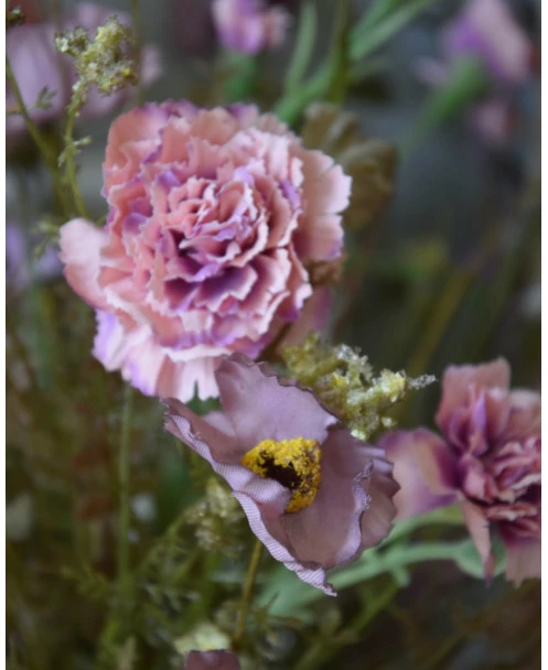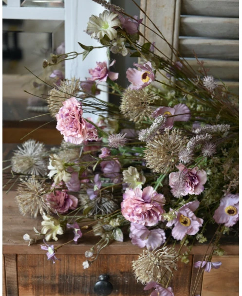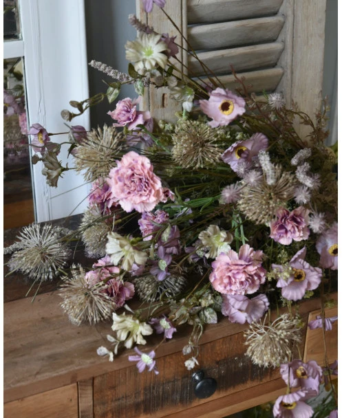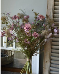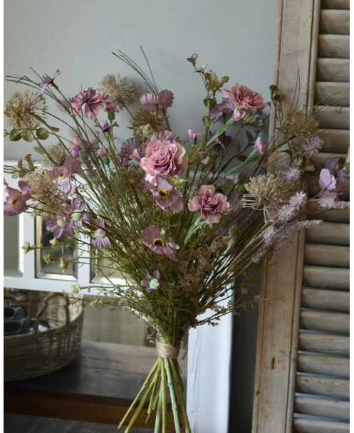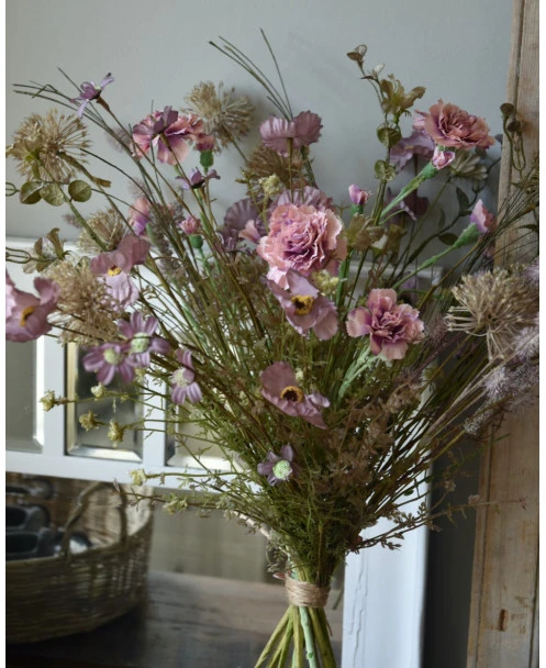 Zijde Pluk Veldboeket In Lila En Grijs Groenen