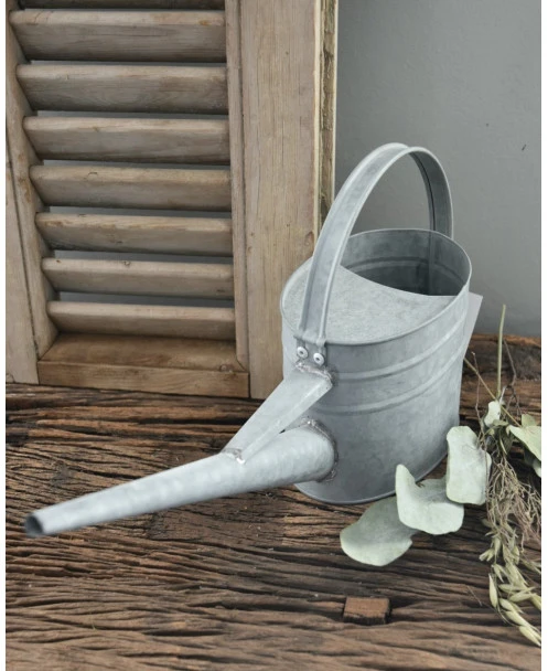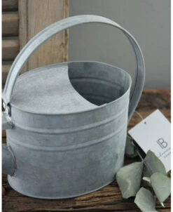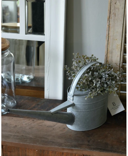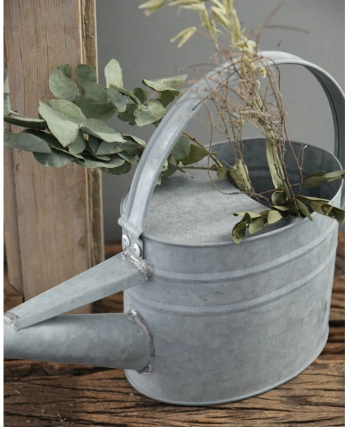 Zinken gieter, IB Laursen. Deze leuke gieter is van zink gemaakt en heeft een lange tuit en een groot rond handvat. Het eenvoudige maar leuke ovale model komt goed tot zijn recht. U kunt de gieter niet allen functioneel gebruiken maar ook leuk met wat droogbloemen decoreren bijvoorbeeld. De gieter heeft een inhoud van 1,4 liter.
