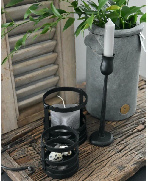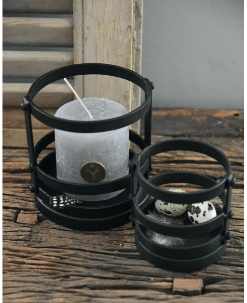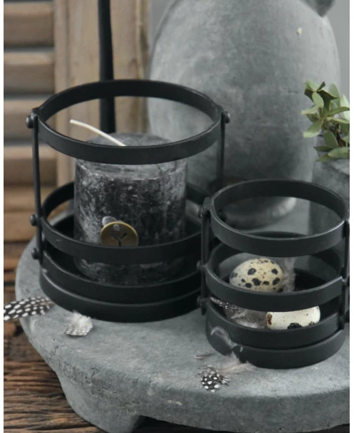 Zwart metalen houder Atmosphere groot, Brynxz per stuk. Deze leuke houder voor bv een waxinelichtje in van metaal gemaakt. Het zwarte lijnenspel en de bevestigingspunten zien er stijlvol en iets stoer uit. U kunt de houder gebruiken met een kaarsje of wat leuke eitjes, mos en bolletjes, wat droogbloemetjes…….. kortom een heel divers item. De houder is ook in een maat kleiner verkrijgbaar.
