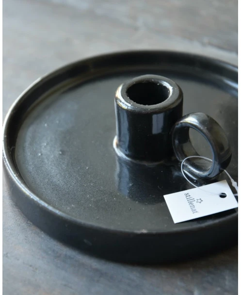 Zwarte Aardewerk Kandelaar Met Oor, IB Laursen